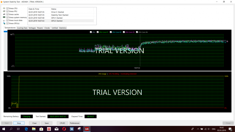 Ноутбук оснащен несъемным аккумулятором емкостью 4670 мАч, а заявленное время работы составляет 10 часов. Производитель не уточняет в каком режиме, но об этом также красноречиво говорит наклейка на подладонной поверхности. К сожалению, заявленные цифры не соответствуют действительности. Так, в тесте PCMark, ноутбук проработал 5 часов 13 минут при яркости в 50%. При максимальной нагрузке в AIDA64 и 100% яркости Acer Swift 5 SF515-51T продержался ровно 1 час 30 минут. В режиме работы с документами и браузером, с периодическим посещением YouTube Acer Swift 5 SF515-51T проработал примерно 6,5 часов с яркостью дисплея примерно 30%. что все равно неплохо, с учетом массы и толщины ноутбука.